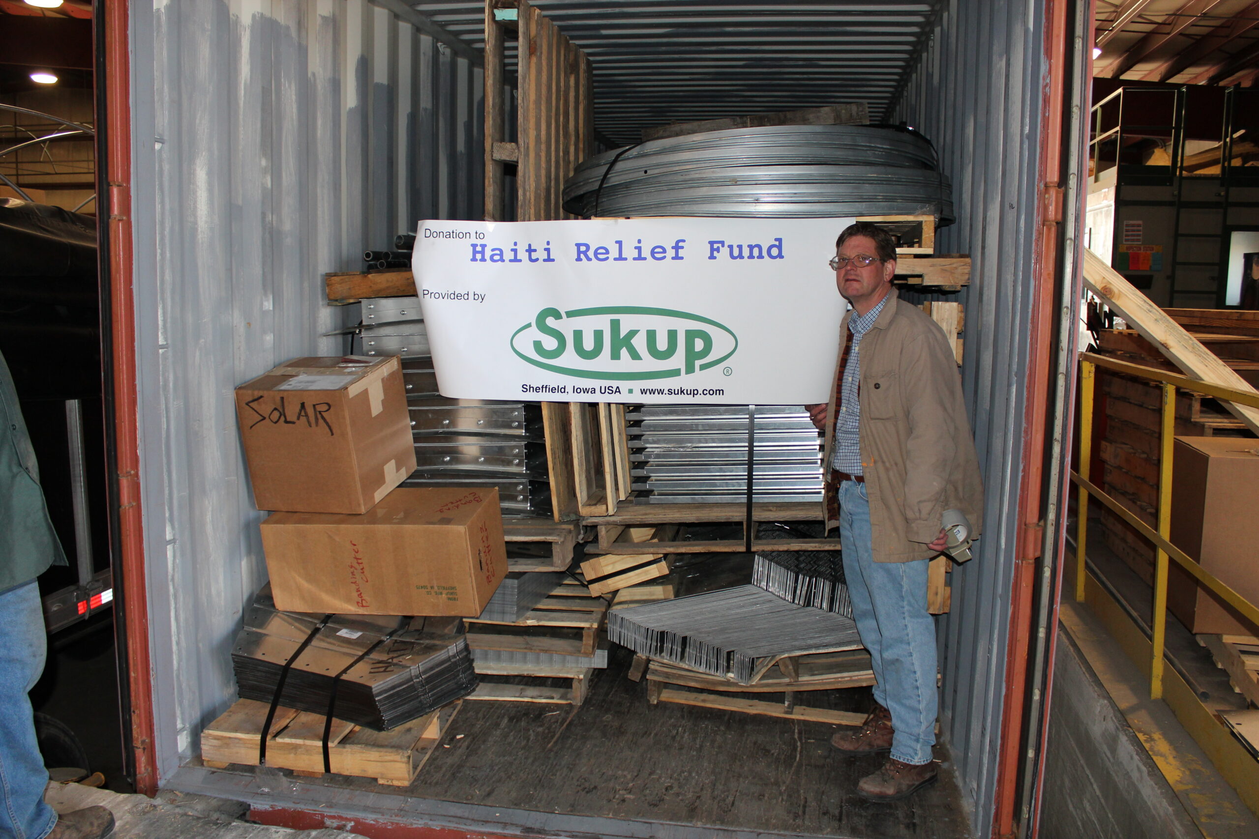 Brett A. Nelson, Safety Director of Sukup Manufacturing Co., personally inspected the shipping container filled with the donated housing units prior to its departure. His involvement highlights the company’s strong commitment not only to safety and quality, but also to humanitarian responsibility.